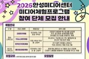 [ 중앙뉴스미디어 ] 안성미디어센터는 지역 어린이와 청소년이 미디어를 쉽고 재미있게 접할 수 있도록 ‘2026년 미디어체험프로그램’에 참여할 관내 어린이집, 유치원, 학교 등 단체를 모집한다고 밝혔다. 이번 프로그램은 아이들이 영상과 소리를 직접 다뤄보며 미디어의 원리를 이해하고 창의력과 표현력을 키울 수 있도록 기획된 체험형 교육이다. 영상·라디오 스튜디오를 활용해 진행되며, 공간·대상별 직업체험과 미디어 놀이 중심의 구성으로 어린이와 청소년이 즐겁게 참여할 수 있는 것이 특징이다. 2026년에는 ▲크로마키 체험(우주·세계여행 영상 촬영) ▲TV 뉴스 제작 체험 ▲뮤직 차트 방송 제작 ▲폴리(효과음) 체험 등 다양한 프로그램이 마련된다. 각 프로그램은 연령대에 맞춰 구성되며, 방송 직업 탐색과 실습 중심 활동을 통해 참여자의 흥미와 몰입도를 높인다. 모집 대상은 안성시 관내 6세 이상 어린이부터 초·중·고등학생이 포함된 어린이집, 유치원, 학교, 기관 등 단체로, 최소 10명에서 최대 30명 내외의 15개 팀을 선착순 모집한다. 체험비는 전액 무료이며, 프로그램은 오는 2월부터 5월까지 매주 수요일 오전에 운