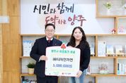 [ 중앙뉴스미디어 ] ㈜디자인가연이 12일 시장실에서 새해를 맞아 이웃돕기 성금 500만 원을 양주시에 기탁했다. 이번 기부는 지역에서 사업을 이어오며 느낀 감사의 마음을 지역사회와 나누고자 마련된 것으로, 기탁된 성금은 경기 사회복지공동모금회를 통해 관내 취약계층 지원에 사용될 예정이다. 김경미 대표는 “공간을 만드는 일은 결국 사람의 삶과 맞닿아 있다고 생각한다”며 “새해를 시작하며 어려운 이웃들의 일상에도 작은 힘이 되길 바라는 마음으로 기탁하게 됐다”고 말했다. 양주시 관계자는 “연초부터 지역사회를 향한 따뜻한 실천을 보여주신 김경미 대표님께 깊은 감사를 드린다”며 “전해주신 마음이 도움이 필요한 이웃들에게 잘 전해질 수 있도록 하겠다”고 전했다.