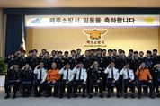 [ 중앙뉴스미디어 ] 파주소방서는 오는 12일 오전, 본서 3층 대회의실에서 타 소방서에서 전입한 소방공무원 41명에 대한 임용신고식을 열었다. 화재, 구조, 구급, 행정 등 다양한 분야에서 새롭게 합류한 전입자들은 이날 임용장을 받고, 파주소방서의 가족으로 첫 발을 내디뎠다. 임용식은 서장 주관의 임용장 수여를 시작으로, 보안 및 보건관리 교육, 조직문화 안내 등으로 진행됐다. 각자의 위치는 달라도 ‘시민의 안전’을 향한 마음은 하나라는 것을 나누는 뜻깊은 시간이었다. 김명찬 파주소방서장은 “이제 여러분은 파주소방서라는 하나의 이름 아래 함께 걷는 동료”라며 ““소방공무원으로서의 긍지와 사명을 가슴에 새기고, 시민의 생명을 지키는 길에 함께하길 바란다”고 전했다. 전입자들은 앞으로 파주소방서의 일원으로서, 각자의 위치에서 사명감과 책임감을 갖고 시민의 생명과 안전을 지키는 데 힘을 보탤 예정이다.