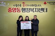 [ 중앙뉴스미디어 ] 오산시 중앙동 행정복지센터는 지난 9일 바로커치킨 모임으로부터 새해를 맞아 취약계층 지원을 위한 후원성금 50만 원을 기탁받았다고 밝혔다. 이번 기탁은 중앙동에서 추진 중인 ‘해뜰릴레이’의 첫 번째 나눔으로, ‘해뜰릴레이’는 후원금과 후원품 기부자를 중심으로 릴레이 형식의 나눔을 이어가며 기부 문화 확산과 지속적인 이웃사랑 실천을 도모하는 사업이다. 특히 이번 후원은 2026년 병오년 새해를 여는 첫 해뜰릴레이로, 지역사회에 따뜻한 나눔의 의미를 더했다. 홍연화 바로커치킨 모임 대표는 “새해를 맞아 주변 이웃들에게 작은 힘이 되고 싶어 회원들과 함께 뜻을 모았다”며 “이번 나눔을 계기로 더 많은 따뜻한 손길이 이어지길 바란다”고 말했다. 백경희 중앙동장은 “새해의 시작과 함께 어려운 이웃을 먼저 생각해주신 바로커치킨 모임에 감사드린다”며 “이번 첫 나눔이 마중물이 되어 더 많은 기부와 참여로 이어질 수 있도록 중앙동에서도 촘촘한 복지 실현에 힘쓰겠다”고 밝혔다.
