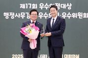[ 중앙뉴스미디어 ] 경기도의회 건설교통위원회 허원 위원장(국민의힘, 이천2)은 26일 경기도의회 대회의실에서 열린 ‘2025년 경기도의회 시상식’에서 대한민국시도의회의장협의회가 수여하는 ‘제17회 우수의정대상’을 수상했다. 허원 위원장은 상임위원장으로서 도민 안전과 이동권을 핵심 가치로 삼아, 건설·교통 분야 주요 현안을 종합적으로 점검해왔다. 특히 정책의 실효성과 예산 집행의 책임성을 강화하는 데 중점을 두고 위원회 운영을 이끌어 왔다. 이를 바탕으로 위원회 심사 과정에서는 단순한 지적에 그치지 않고 관계기관과의 협의를 통해 대안 제시와 실행 점검을 병행하며, 정책이 실제 현장에서 작동하도록 사후관리와 성과 점검 체계를 강화하는 데 힘써 왔다. 아울러 사고 예방을 위한 시설 안전관리와 현장 점검, 행정사무감사를 통한 문제 진단과 후속 개선 요구, 예산안·결산 심사를 통한 비효율적 지출 정비와 재정 우선순위 재정립 등 위원회 운영 전반을 현장–제도–예산으로 연결하는 구조적 접근을 지속해 왔다. 이 같은 의정활동은 건설·교통 정책의 실효성을 높이고, 도민이 체감할 수 있는 안전과 이동 편의 개선으로