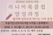 [ 중앙뉴스미디어 ] 군포시산본도서관은 2026년에도 관내 시니어들에게 책을 통해 서로 소통하고 공감하는 능동적 독서교육 프로그램인 ‘시니어 북클럽 양성 과정’을 운영한다고 밝혔다. 이번 교육은 2월 4일부터 4월 15일까지 매주 수요일 오전 10시부터 12시까지 총 10주차로 진행되며 북클럽 운영을 위한 운영법, 글쓰기 방법, 주제도서의 낭독과 필사 등에 대해 교육하여 시니어 독서동아리로 자발적인 활동을 할 수 있도록 실전교육 위주로 진행된다. 산본도서관에서 2025년도에 ‘낭독과 필사로 떠나는 글쓰기 여행’ 수업을 맡았던 최선화 강사가 진행하며 도서관은 교육 기간 중, 신규 시니어 독서동아리를 모집 및 결성하여 지속적인 독서 모임 활동을 지원할 계획이다. 함께 글쓰기 및 독서에 관심있는 관내 55세 이상 시니어라면 누구나 신청 가능하며, 1월 19일부터 선착순으로 20명을 모집한다. 신청은 군포시도서관누리집 문화행사신청 또는 전화 접수가 가능하다. 하은호 군포시장은 “앞으로 산본도서관이 시니어 세대가 책으로 하나 되는 소통공간이 될 수 있도록 다양한 독서교육 프로그램을 운영하겠다”라며 “독서교육