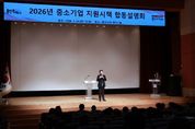 [ 중앙뉴스미디어 ] 용인특례시는 20일 시청 에이스홀에서 지역 내 중소기업 지원 정책을 설명하는 ‘2026년 중소기업 지원시책 합동설명회’를 열었다. 이날 행사에는 ▲용인시산업진흥원 ▲경기지방중소벤처기업청 ▲중소벤처기업진흥공단 ▲기술보증기금 ▲경기신용보증재단 ▲소상공인시장진흥공단 ▲경기도경제과학진흥원 ▲경기테크노파크 ▲경기FTA통상진흥센터 ▲KOTRA 등 유관기관이 함께 참여했다. 시는 경기지방중소벤처기업청과 금융지원 등 여러 기업 지원 정책을 안내했다. 참여기관별 금융지원, 판로ㆍ수출지원, 연구ㆍ개발 지원 등 중소기업을 위한 정책 방향과 주요 사업 내용 설명도 이어졌다. 시청 에이스홀 로비에 마련한 상담 부스에선 기관별 자금, 수출, 연구개발(R&D) 지원 등 각 분야 담당자가 맞춤형 상담을 진행했다. 시는 올해 특례보증 지원 등 금융지원 4개 사업, 용인 AI무역지원센터(구 용인deXter) 운영 등 수출지원 12개 사업, ‘기술닥터사업’ 등 기술지원 7개 사업을 포함한 기업지원 사업을 위해 예산 총 122억 8800만 원을 책정했다. 용인기업지원시스템’에 접속하면