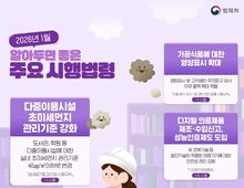 [ 중앙뉴스미디어 ] ■ 다중이용시설 초미세먼지 관리기준 강화 - 도서관, 학원 등 다중이용시설에 대한 실내 초미세먼지 관리 기준 40㎍/㎥ 이하로 변경 「실내공기질 관리법 시행규칙」 - 1.1. 시행 ■ 가공식품에 대한 영양표시 확대 - 영양표시 및 고카페인 주의문구 표시 의무 품목 확대 적용 「식품 등의 표시·광고에 관한 법률 시행규칙」 - 1.1. 시행 ■ 디지털 의료제품 제조·수입신고, 성능인증제도 도입 - AI, 로봇기술 등 첨단기술이 적용된 의료기기에 대한 안전성 관리 강화 「디지털의료제품법」 - 1.24. 시행 ■ 흉기난동 범죄 예방 위한 총포·도검 등 안전관리 강화 - 총포 외에 도검·석궁 등의 소지허가를 받으려는 경우에도 정신질환 또는 성격장애 등 확인 서류 제출 의무 「총포·도검·화약류 등의 안전관리에 관한 법률」 - 1.8. 시행 [뉴스출처 : 법제처]