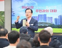 [ 중앙뉴스미디어 ] 이현재 하남시장은 26일 미사3동 행정복지센터에서 열린 ‘미사3동 주민과의 대화’에 참석해 K-컬처 복합 콤플렉스(K-스타월드) 조성과 5성급 호텔 유치 등 지역 핵심 사업을 둘러싼 오해를 직접 해소하고, 미사3동의 생활 밀착형 현안에 대한 해결 방안을 제시했다. 이날 이 시장은 K-스타월드 조성 사업이 아파트 단지가 주로 들어서는 부동산 개발이 아니냐는 일각의 지적에 대해 “정확한 이해를 하지 못해 생긴 오해”임을 분명히 했다. 도시개발 시 주택 비율이 보통 24~43%에 달하는 것과 달리, K-스타월드는 이를 17%로 최소화해 일자리와 주거, 즐길거리가 공존하는 ‘직주락’ 도시를 만드는 것이 목표라고 강조했다. 아울러 미사섬의 60% 이상을 공원과 녹지로 조성하고 한강변 200m 구간은 녹지축으로 보존하는 등 친환경 개발 원칙을 재확인했다. 망월동 941-1번지 일대에 추진 중인 인터컨티넨탈 호텔과 같은 5성급 호텔 건립 사업에 주상복합 시설도 함께 조성될 예정인지 묻는 질문에도 명확하게 답변했다. 이현재 시장은 “5성급 호텔은 초기 투자비가 막대해 호텔만으로는 민간 참여를 이끌어낼 수