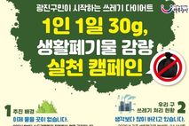 [ 중앙뉴스미디어 ] 광진구는 수도권 생활폐기물 직매립 전면 금지 시행에 선제적으로 대응하기 위해, 전년 대비 생활쓰레기 6% 감량을 목표로 구민과 함께하는 '1인 1일 30g 쓰레기 다이어트, ‘1.1.30.쓰다 캠페인’'을 본격 추진한다. 올해부터 수도권에서 생활폐기물 직매립이 전면 금지됨에 따라, 광진구는 폐기물 처리 환경 변화에 선제적으로 대응하고자 생활 속 쓰레기 감량을 핵심 과제로 설정했다. 이에 구는 구민이 일상에서 쉽게 실천할 수 있는 참여형 프로그램을 중심으로 감량 실천을 확산시키고, 공공부문과 민간이 함께 쓰레기 줄이기에 동참하도록 할 계획이다. 이번에 추진하는 '1.1.30.쓰다 캠페인'은 올바른 분리배출을 이해하고, 쓰레기 감량 실천을 스스로 다짐하도록 유도하는 주민 참여형 캠페인이다. 광진구민의 약 20%(약 6만 6천 명)가 하루 평균 30g의 쓰레기 배출을 줄일 경우, 연간 약 725톤의 생활쓰레기 감량 효과가 기대된다. 30g은 배달 음식 용기 1개와 일회용 수저 1개, 나무젓가락 1개 수준으로, 일상 속 작은 실천으로 가능한 분량이다. 구는 이번 캠페인을 서울시 ‘생활폐기물 다이어