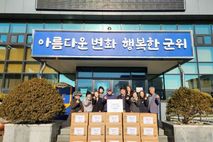 [ 중앙뉴스미디어 ] 군위군 부계면은 지난 29일, 군위알리미(회장 박두하)에서 부계면 취약계층에 마스크 3만장을 기탁했다고 밝혔다. 이번 기탁은 경기 침체와 겨울철 독감 확산 등으로 어려움을 겪는 주민들을 돕기 위한 나눔 활동의 일환으로 관내 경로당, 독거노인 등 취약계층에 배부될 예정이다. 박두하 회장은 “군위알리미 회원 모두가 지역에 도움이 되고자 마음을 모았다”며 “특히 겨울철 감염병이 확산되는 시기에 마스크가 꼭 필요한 분들에게 조금이나마 보탬이 되고 싶었다”고 말했다. 김병석 부계면장은 “군위알리미에서 보여주신 따뜻한 나눔의 실천에 깊은 감사를 드린다”며 “기탁해주신 마스크는 도움이 필요한 주민들에게 잘 전달해 모두가 건강하게 겨울을 보낼 수 있도록 하겠다”고 전했다. 한편, 군위알리미는 2019년에 구성된 경상북도 내고장알리미에서 시작되었으며 현재 회원수는 30여명으로, 군위군의 관광지, 맛집, 축제 등 즐길거리를 홍보하여 지역의 우수성을 전파하는 홍보단체로 거듭나고자 군위군의 홍보활동에 앞장서고 있다. [뉴스출처 : 대구시 군위군]