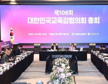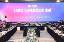 [ 중앙뉴스미디어 ] 대한민국교육감협의회(회장 강은희 대구광역시교육감)는 1월 29일, 경기도 성남시 더블트리바이힐튼서울판교호텔에서 제106회 총회를 개최했다. 이번 총회에서는 전국 시도교육감 및 교육청 관계자, 협의회 사무국 관계자 약 200명이 참석하여 '사립학교의 ‘공직자 이해충돌방지법’ 적용을 위한 법령 개정 건의' 등 5개 안건을 심의·의결했고, '행정통합 추진에 따른 경과 및 쟁점'에 대해 교육의제로 토의했다. 이날 심의 안건은 ▲사립학교의 ‘공직자 이해충돌방지법’ 적용을 위한 법령 개정 건의, ▲외부강의 등 요청 표준서식 마련 요구, ▲‘보호자 협조·동의 관련’ 기초학력 보장법 및 동법 시행령 개정 요청, ▲교육활동 침해 학생의 학적변동 제한을 위한 법률 개정 건의, ▲학습지원 소프트웨어 관련 초·중등교육법 개정 제안으로 모두 5개의 안건을 심의·의결했고, 지난해 12월 11일 실무협의회를 통해 전국 17개 시도교육청의 전원 합의 과정을 거쳤다. 다음으로 2개 교육청에서 우수사례를 발표했는데, ▲(경기) 시·공간 경계를 넘어 세계를 잇는 한국어교육 온라인 경기한국어랭귀지스쿨(KLS 3섹터) 구축,