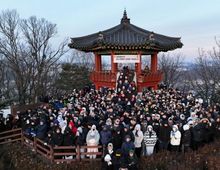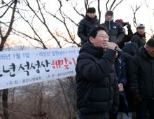 [ 중앙뉴스미디어 ] 이상일 용인특례시장은 1월 1일 새해를 맞아 일출(日出)로 유명한 석성산에 올라 시민 2000여 명과 함께 해맞이를 하고 덕담을 주고 받았다. 용인시체육회와 용인시산악연맹이 주최·주관한 이날 행사에는 이상일 시장이 시민들과 함께 새해 첫 일출을 바라보며 시의 발전과 시민의 안녕을 기원했다. 이 시장은 오전 7시부터 8시 30분까지 석성산에서 시민들과 새해 인사를 하고 덕담을 나눴으며, 시민의 기념사진 촬영 요청에 일일이 응하며 소통하는 시간을 가졌다. 체육회와 산악연맹은 산 중턱과 정상에서 시민들을 위해 떡국과 커피, 차 등을 제공했고 시민들은 감사의 뜻을 나타냈다. 이 시장은 정상에서 시민들에게 “새해 첫날 떠오르는 해의 힘찬 기운과 붉은 말의 역동적 기운과 석성산의 기상을 받아 시민 모두가 힘찬 출발을 하시길 바란다. 새해 복 많이 받으시고 소망도 다 성취하시기를 바란다"고 인사했다. 이 시장은 "시는 올해에도 시장과 공직자들이 힘과 지혜를 모아 시를 발전시키고 시민 생활에 보탬이 되는 일들을 계속 열심히 해나가겠다"고 했다. 석성산에서는 해마다 신