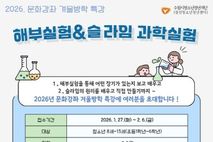 [ 중앙뉴스미디어 ] 수원시청소년청년재단 권선청소년청년센터는 겨울방학 기간 동안 단회기 체험 중심의 특강을 운영하여 청소년에게 다양한 문화 활동의 기회를 제공하고자 2026년 문화강좌 겨울방학특강 수강생을 모집한다. 이번 청소년 겨울방학특강은 초등학생 눈높이에 맞춘 실험·탐구 중심 수업으로 구성되어, 어렵게 느껴질 수 있는 과학 개념을 쉽고 재미있게 이해할 수 있도록 돕는다. 권선청소년청년센터 관계자는“겨울방학 동안 아이들이 의미 있는 시간을 보낼 수 있도록 과학을 놀이처럼 즐길 수 있는 수업을 준비했다”며 “방학기간 동안 과학에 대한 흥미를 높이고, 체험 중심의 수업을 통해 창의적 사고력과 탐구 능력을 키우는 계기가 되길 바란다”고 전했다. 한편, 권선청소년청년센터 문화강좌 겨울방학특강은 2월 10일부터 12일까지 3회기로 진행되며 수원지역 초등학생을 대상으로 한다. 자세한 내용 및 신청 방법은 홍보지를 통해 확인할 수 있다.