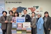 [ 중앙뉴스미디어 ] 수원시여성리더회가 “경제적·정서적 어려움을 겪는 외국인들에게 전달해 달라”며 600만 원 상당의 화장품 선물세트(스킨·로션·크림 3종)를 수원시에 전달했다. 13일 수원시외국인복지센터에서 열린 전달식에는 김은주 수원시 여성가족국장, 김미애 여성리더회 회장 등이 참석했다. 김미애 회장은 “작은 정성이지만, 타국에서 생활하는 이웃들이 스스로를 가꾸며 잠시나마 기쁨을 느꼈으면 좋겠다”며 “앞으로도 함께 어우러져 살아가는 따뜻한 수원시를 만드는 데 앞장서겠다”고 말했다. 수원시 관계자는 “화장품은 외국인 주민들에게 선호도가 높은 물품”이라며 “여성리더회의 세심한 배려와 관심에 깊이 감사드린다”고 전했다. 수원시여성리더회는 ‘수원시 여성지도자대학’ 수료생들로 구성된 단체로, 2004년 출범했다. 현재 1240여 명의 회원이 활동하고 있다. 매년 한부모가정 지원, 저소득층 장학금 기탁, 복지시설 봉사 등 다양한 사회공헌 활동을 하고 있다.