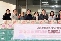 [ 중앙뉴스미디어 ] 이재식 수원특례시의회 의장은 2월 6일 오후, 권선1동 행정복지센터에서 열린 설 명절 이웃사랑 나눔 전달식에 참석했다. 이날 전달식에는 김은경 의원(더불어민주당, 세류1·2·3·권선1)도 함께했다. 이 자리는 설 명절을 앞두고 지역 내 저소득 가구에 따뜻한 정을 전하기 위해 마련됐으며, 권선1동 단체장과 시·도의원, 주민 등이 함께했다. 전달식에서는 관내 저소득가구 447가구를 대상으로 온누리상품권과 식료품, 생필품 등이 전달됐으며, 사회복지공동모금회 기금과 지역 후원을 통해 지원이 이뤄졌다. 이재식 의장은 “명절을 앞두고 이웃을 먼저 생각하는 나눔이 지역사회에 큰 힘이 된다”며 “의회도 시민 삶에 온기를 더하는 나눔이 이어질 수 있도록 함께하겠다”고 말했다.