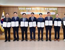 [ 중앙뉴스미디어 ] 경기도가 국토교통부, 안산시 및 5개 전문기관과 함께 안산선 지하화 통합개발사업의 성공적인 추진을 위해 힘을 모으기로 했다. 경기도는 6일 안산시청에서 국토교통부, 안산시, 국가철도공단, 한국철도공사, 한국토지주택공사, 국토연구원, 한국교통연구원 등 총 8개 기관이 참여하는 ‘안산선 지하화 통합개발사업 업무협약 및 착수보고회’를 개최했다. 안산선 지하화 통합개발사업은 안산선 초지역~중앙역, 5.12km 구간을 지하화하고 확보된 상부 공간 약 71만㎡를 역세권과 연계한 생활·상업공간, 녹지와 공원, 문화·여가 공간으로 조성하는 사업이다. 참여 기관들은 협약을 통해 ▲상시 협력체계 구축 ▲전문성 지원 ▲제도개선 발굴 ▲신속한 행정절차 지원 등을 위해 상호 협력하기로 했다. 경기도는 유관 전문기관들이 협의체에 대거 참여함에 따라 철도지하화 사업의 전문성이 한층 강화될 것으로 기대하고 있다. 협약식에는 홍지선 국토교통부 제2차관, 김대순 경기도 행정2부지사, 이민근 안산시장 및 관계기관 본부장들이 참석했다. 협약식 이후에는 안산선 지하화 대상지인 고잔역 일원을 방문해 현장을 확인하고