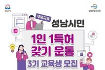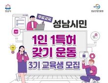 [ 중앙뉴스미디어 ] 성남산업진흥원은 시민의 창의적인 아이디어를 지식재산으로 보호하고 창업으로 연결하기 위해 '성남시민 1인 1특허 갖기 운동' 제3기 교육생을 모집한다고 밝혔다. ‘성남시민 1인 1특허 갖기 운동’은 성남시민 누구나 참여할 수 있는 지식재산 교육 프로그램으로, 아이디어 발굴부터 권리화까지 전 과정을 지원하는 시민 참여형 지식재산 프로그램이다. 해당 과정에서는 특허 기초 교육, 아이디어 고도화, 변리사 상담, 출원 절차 안내 등 지식재산 창출에 필요한 실무 과정을 체계적으로 제공한다. 이 프로그램은 2025년 처음 시작되어 연 2회 기수로 운영되고 있으며, 올해는 상반기 제3기 교육생 모집을 시작으로 하반기 제4기 과정도 운영될 예정이다. 지난 2025년에는 상·하반기 교육을 통해 총 209명의 시민이 참여하고 183명이 교육을 수료해 수료율 88%를 기록했다. 교육 이후 특허·상표·디자인 등 지식재산권 72건이 창출됐으며, 이는 교육생 3명 중 1명 이상이 실제 지식재산 창출 성과를 낸 수준이다. 이번 3기 교육생 모집은 3월 9일부터 3월 27일까지 진행되며 강좌별
