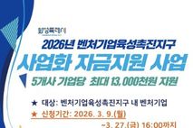 [ 중앙뉴스미디어 ] 화성특례시와 화성산업진흥원(원장 전병선)은 화성동탄테크노폴 벤처기업육성촉진지구 내의 벤처기업의 성장을 지원하기 위해‘2026년 벤처기업육성촉진지구 사업화 자금지원 사업’ 참여기업을 오는 3월 27일까지 모집한다. ‘2026년 벤처기업육성촉진지구 사업화 자금지원 사업’은 ▲개발 ▲사업화 ▲ 마케팅 등 제품 시장 진출에 필요한 전 과정을 기업당 최대 1,300만원을 지원하는 사업으로, 시제품 제작부터 홍보까지 기업 맞춤형 원스톱 지원이 가능하다. 지난해 참여기업 5개사는 매출 2억 5천만원, 지식재산권 획득, 신규고용 3건의 실적을 창출하며, 화성시 유망 벤처기업의 성장 지원에 대한 실효성을 입증했다. 화성동탄테크노폴 벤처기업육성촉진지구에 소재한 벤처기업을 대상으로 모집하며, 서류 및 발표평가를 거쳐 총 5개 기업을 선정할 예정이다. 전병선 화성산업진흥원장은 “이번 사업이 촉진지구 내 벤처기업의 성장을 이끄는 마중물이 되길 바란다”며, “기업들이 기술 개발 성과를 시장으로 연결하여, 고용과 매출 증대로 이어지는 자생적 성장구조를 조성해 나가겠다”고 밝혔다.