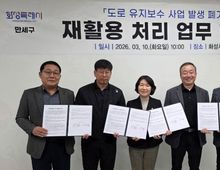 [ 중앙뉴스미디어 ] 화성특례시 만세구가 도로 유지보수 과정에서 발생하는 폐기물을 효율적으로 처리하고 자원 재활용을 확대하기 위해 관내 아스콘 생산 업체와 ‘폐아스콘 재활용 처리 협약’을 체결했다. 이번 협약은 지속적인 도시 확장과 도로 개설로 인해 관리 도로가 2,514개 노선(총 연장 1,586.5km)으로 급증하고, 최근 폭염 및 집중호우 등 이상기후로 인한 도로 파손이 가속화됨에 따라 마련된 혁신적인 폐기물 관리 대책이다. 그동안 도로 재포장 공사 시 발생하는 폐아스콘은 고품질의 재활용이 가능한 자원임에도 불구하고, 별도의 처리 비용을 들여 매립하거나 위탁 처리해 왔다. 특히 최근 4년간(2022~2025년) 발생한 폐아스콘은 약 1만 6,539톤에 달하며, 이에 따른 운반 및 처리 비용이 전체 공사비에서 상당한 비중을 차지해 예산 효율성 저하와 환경 오염 문제가 제기되어 왔다. 이에 만세구는 관내 아스콘 생산 및 재활용이 가능한 적격 사업자와 협약을 체결하고, 구청에서 아스콘 물품을 구매하는 대신 공사 중 발생한 폐아스콘을 해당 업체에서 무상으로 수거해 재생아스콘으로 재활용하는 방식을 도입하기로 했다.