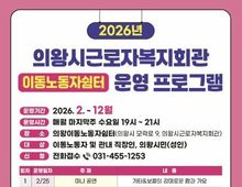 [ 중앙뉴스미디어 ] 의왕시가 매월 마지막 주 수요일, 이동노동자쉼터(모락로 9, 근로복지회관)에서 쉼이 있는‘이동노동자쉼터 프로그램’을 운영한다. 이동노동자들의 정서적 휴식을 지원하고 시민과 함께 소통할 수 있는 교육·문화 프로그램 마련을 위해 기획된 이번 프로그램은 2월 25일, 감미로운 기타와 보컬이 어우러진 팝과 가요의 ‘작은 공연’으로 시작된다. 이후, 시에서는 ▲디퓨저 만들기 ▲재무특강 ▲크리스마스 케이크 만들기 등 참가자들의 일상에 활력을 더해 줄 수 있는 다양한 체험 행사를 편성해 운영할 예정이다. 아울러, 이번 프로그램의 수강생들은 쉼터 1층에 조성 돼 있는 카페테리아도 자유롭게 이용할 수 있다. 프로그램은 이동 노동자와 의왕 시민(성인)이면 누구나 참여할 수 있으며, 오후 7시부터 9시까지 20명 내외로 운영될 예정이다. 프로그램의 신청은 전화또는 현장 등록을 통해 가능하다. 김성제 시장은 “이동노동자 뿐 아니라 일반 시민도 참여할 수 있는 쉼과 배움이 함께하는 프로그램을 마련했다”며 “많은 분들이 이동노동자쉼터를 방문해 유익한 정보도 얻고 휴식을 갖는 뜻깊은 기회를 얻게 되기를