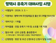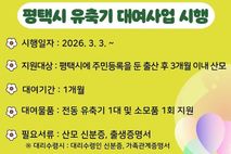 [ 중앙뉴스미디어 ] 평택시는 출산 초기 산모의 경제적 부담을 덜고 안정적인 모유 수유 환경조성을 위해 오는 3월 3일부터 유축기 대여사업을 신규 시행한다고 밝혔다. 유축기는 유방 울혈이나 수유 패턴 불안정 등으로 출산 직후 직접 수유가 원활하지 않을 때 단기간 활용되는 경우가 많아, 별도 구매 시 경제적 부담이 될 수 있다. 이에 시는 출산 후 3개월 이내 산모를 대상으로 전동유축기를 1개월간 대여하여 초기 수유의 어려움을 완화하고 모유 수유의 안정적 정착을 지원하고자 한다. 신청은 방문 또는 유선으로 가능하며 당일 수령을 원칙으로 한다. 신청 시에는 산모 신분증과 출생 증명서를 지참해야 하고, 대리 신청의 경우 대리인 신분증과 가족관계증명서를 추가로 제출해야 한다. 평택보건소 관계자는 “모유 수유는 신생아의 면역력 향상과 산모의 회복에 중요한 역할을 한다”며 “이번 사업을 통해 산모들이 더 안정적인 환경에서 건강한 양육을 시작할 수 있도록 적극적으로 지원하겠다”라고 말했다.