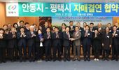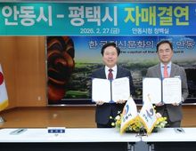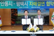 [ 중앙뉴스미디어 ] 경기도 평택시와 경상북도 안동시가 27일, 안동시청에서 자매결연 협약식을 갖고 상호 신뢰와 협력을 바탕으로 행정, 경제, 문화, 관광, 농업 등 다양한 분야의 교류 확대를 약속했다. 이번 협약식에서는 정장선 평택시장, 이종원 평택시의회 의회운영위원장, 김영주 평택시의회 기획행정위원장, 권기창 안동시장, 김경도 안동시의장을 비롯하여 양 도시 관계공무원 및 민간대표단 등이 함께 자리해 실질적인 교류 협력 추진을 위한 상호 협력 의지를 다졌다. 양 도시는 행정교류를 넘어 재난 상황에서도 협력관계를 이어오며 상호 신뢰를 구축해 왔다. 지난해 3월 평택시는 안동 대형산불 피해 복구를 위해 등짐펌프 100개를 긴급 지원했으며, 같은 해 5월에는 평택 소재 기업 및 민간단체가 안동 산불 피해 청소년을 위한 장학기금 2천만 원을 기탁하는 등 실질적인 연대를 이어온 바 있다. 이번 자매결연을 계기로 △행정 및 정책 교류 △지역 농·특산물 판로 확대 협력 △문화·관광 자원 연계 프로그램 운영 등 다양한 분야에서 상생 협력을 강화해 나갈 계획이다. 정장선 평택시장은 “안동시는 한국 정신문화의 수도