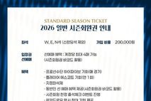 [ 중앙뉴스미디어 ] 김천상무가 시즌회원, 어린이 시즌회원, 티켓북으로 폭넓은 관람 선택지를 제공한다. 김천상무프로축구단(대표이사 이재하)이 1월 30일 14시부터 시즌회원, 어린이 시즌회원, 티켓북 판매를 시작했다. 먼저 시즌회원은 W, E, N석(스탠딩석 제외)에서 이용 가능하며, 가격은 20만 원이다. 수량은 50매 한정이다. 구매자에게는 시즌회원 카드와 랜야드, 신규 MD 응원 머플러가 제공된다. 또한 지정좌석제 운영과 함께 계정당 최대 4매까지 선예매 혜택이 주어지며, 매 경기 프로선수단 하이파이브, 연 1회 플레이어 에스코트, 시즌회원 한정 출석체크 이벤트, 럭키드로우 행사 참여, 구단 행사 우선 참여 등의 혜택을 누릴 수 있다. 어린이 시즌회원은 W, E, N석(스탠딩석 제외)에서 이용 가능하며, 가격은 14만 원이다. 수량은 100매로 한정 판매된다. 구성품은 어린이 시즌회원 카드, 랜야드, 바람막이로 구성되어 있다. 어린이 시즌회원에게도 계정당 최대 4매까지 선예매 혜택이 제공되며, 매 경기 프로선수단 하이파이브 기회(동반 2인 포함, 유료 티켓 소지자에 한함)와 연 1회 플레이어 에스코트 기회