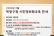 [ 중앙뉴스미디어 ] 고양특례시 덕양구는 급변하는 디지털 환경에 대응하고 시민들의 정보 활용 능력을 높이기 위해 ‘제2차 시민정보화교육’을 운영한다고 13일 밝혔다. 이번 교육은 △실무 활용도가 높은 엑셀 과정 △디지털 소외 계층을 위한 스마트폰 기초 및 AI 맛보기 과정으로 구성됐다. 특히 단순한 기기 조작을 넘어 최근 화두인 인공지능(AI) 도구를 직접 체험해 볼 수 있는 커리큘럼이 포함되어 눈길을 끈다. 교육은 오는 3월 3일부터 26일까지 덕양구청 전산교육장에서 진행되며, 수강 신청은 이달 19일 오전 9시부터 덕양구청 누리집을 통해 가능하다. 구 관계자는 “이번 교육이 시민들의 디지털 격차를 해소하고 실전 업무 능력을 향상하는 계기가 되길 바란다”며 “앞으로도 수요자 중심의 맞춤형 콘텐츠를 지속적으로 확대하겠다”고 말했다.