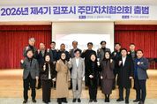 [ 중앙뉴스미디어 ] 2026년 제4기 주민자치협의회가 출범하며 새로운 도약을 알렸다. 김포시는 28일 시청 대회의실에서 14개 읍‧면‧동 4기 주민자치회장으로 구성된 주민자치협의회의 첫 정기회의를 개최하고, 본격적인 4기 주민자치회 운영의 시작을 알렸다. 이날 회의는 ▲위촉장 수여 ▲임원선출 ▲정기회의 ▲자체회의 순으로 진행됐으며, 2026년 주민자치협의회를 이끌어갈 임원으로 황도연 회장(장기본동), 조권창 부회장(하성면), 김현숙 감사(양촌읍), 장재용 정책국장(대곶면), 장보람 사무국장(마산동)이 선출 및 선임되며 협의회 구성을 마쳤다. 정기회의에서는 향후 주민자치협의회의 운영 방향을 논의하고 새로운 임기 출범에 맞춰 자치회 일원으로서의 책임과 역할을 되새기는 시간을 가졌다. 이번에 선출된 김포시 황도연 주민자치협의회장은 “4기 주민자치협의회의 첫 출발을 함께해 주신 자치회장들께 감사드린다”며, “주민자치의 새로운 도약을 이끄는 시기인 만큼, 각 자치회장님들과 함께 힘을 모아 김포시 주민자치 발전에 기여하는 협의회를 만들어 가겠다.”고 소감을 밝혔다. 김병수 시장은 “주민자치회는 지역의 특성과