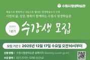 [ 중앙뉴스미디어 ] 수원시평생학습관이 12월 17일 오전 10시부터 2026년 1분기 수강생을 모집한다. 1월부터 3월까지 운영되는 1분기 강좌는 ▲첨단미래기술 프로그램 ▲디지털 지식정보 프로그램 ▲생활문화 프로그램 ▲교양 프로그램 ▲인문 프로그램 ▲기관 협력 재능기부 프로그램 ▲거북이공방 프로그램 ▲대상별 맞춤프로그램 ▲시민교육 프로그램 ▲언제든학교 시민기획 프로그램 ▲무지한스승의만남 시민참여기획 프로그램 등 총 11개 과정, 115개 세부 강좌로 구성됐다. 첨단미래 기술 프로그램을 강화했다. 인공지능(AI) 기술에 초점을 둔 첨단미래기술 프로그램, 성균관대학교 지능로봇리빙랩과의 협업을 통한 자율주행 실습, 가상현실(VR)드론 시뮬레이션 체험 등이 있다. 또 글쓰기, 사주명리학, 한글 서예, 현대미술, 명화감상, 뮤지컬 등을 주제로 한 교양 프로그램과 중장년, 시니어, 제2의 인생설계, 청소년 등을 대상으로 하는 대상별 맞춤 프로그램을 마련했다. 수원시는 새빛톡톡 시민 설문조사를 활용해 2026년 강사를 공개 모집했고, ▲생활문화 프로그램 ▲디지털 지식정보 프로그램 ▲대상별 맞춤프로그램 ▲첨단