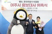 [ 중앙뉴스미디어 ] 여주시는 지난 29일 시청 시장실에서 이충우 여주시장과 관련 국‧과장이 참석한 가운데 EBS ‘자이언트 펭TV’의 마스코트 캐릭터 펭수와, 한국무용가 이경화를 홍보대사로 위촉했다고 밝혔다. 펭수는 2019년 4월 EBS 어린이 프로그램 ‘자이언트 펭TV’로 혜성처럼 등장하여 어린이 팬층을 넘어서 전 세대의 귀여움까지 독차지하는 유례없는 인기를 선보이며 현재 구독자 170만명의 유튜브 채널 마스코트 캐릭터로 활동하고 있으며, 신곡을 3곡이나 출시한 가수이기도 하다. 한편 펭수는 2023년 여주도자기축제를 시작으로 3년 연속 도자기축제에 초대손님으로 참석하면서 여주와의 사랑을 이어왔다. 작년 도자기축제에서는 펭수의 캐릭터가 새겨진 도자기가 완판될 정도로 여주시민의 열렬한 환영을 받아왔다. 이날 함께 홍보대사로 위촉된 이경화 (사)오연문화예술원 이사장은 1988년 서울올림픽 폐막식 공연, 2002년 한일월드컵 개막식 공연의 안무와 지도를 맡았던 한국을 대표하는 무용가이자 안무가로 활동해왔으며, 전세계 400여개 도시에서 한국 무용의 아름다움을 전파한 공로로 2003년 해외홍보유공 국무총리상을 수