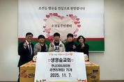 [ 중앙뉴스미디어 ] 의왕시 오전동에 위치한 생명숲교회가 11월 7일, 어려운 이웃을 돕기 위해 성금 30만 원과 라면 75개를 오전동주민센터에 기부하며 지역사회에 따스한 온정을 전했다. 이번 기부는 교회가 매년 꾸준히 이어오고 있는 나눔 실천 활동 중 하나로 추진됐으며, 소외된 이웃들에게 작은 힘이라도 보태고자 하는 교인들의 정성을 모아 마련됐다. 왕한상 담임목사는 “작은 정성이지만 어려운 이웃들에게 이번 기부가 도움이 되길 바란다”며 “앞으로도 지역사회와 함께 성장하며 나눔을 이어가는 교회가 되겠다”고 전했다. 신화정 오전동장은 “매년 이어지고 있는 생명숲교회의 따뜻한 나눔에 깊이 감사드린다”며 “기부된 성금과 물품은 도움이 필요한 지역 내 저소득층에게 전달하겠다”고 말했다.