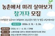 [ 중앙뉴스미디어 ] 공주시는 예비 귀농·귀촌인이 농촌 생활을 직접 체험하며 정착을 준비할 수 있도록 돕는 ‘농촌에서 미리 살아보기’ 프로그램 상반기 참가자를 오는 2월 26일까지 모집한다고 밝혔다. 이번 프로그램은 4월부터 6월까지 3개월간 정안면 소랭이마을에서 운영된다. 참가자들은 영농 실습과 지역 주민과의 교류, 농촌 문화 체험 등 다양한 활동에 참여하며 귀농·귀촌 생활을 미리 경험하게 된다. 지난해에는 총 6가구가 참여했으며, 이 가운데 2가구는 공주시 귀농·귀촌인의 집에 입주했고 1가구는 실제로 공주시에 전입해 안정적인 정착을 시작했다. 프로그램 기간 동안 주거 공간은 무료로 제공되며, 월 15일 이상 참여한 참가자에게는 매월 30만 원의 연수비가 지원된다. 모집 대상은 만 18세 이상 65세 이하의 타 도시 거주자로, 프로그램 최초 참가자(타 지방자치단체 참여 이력 포함), 구직급여 수급자, 가족 단위 참가자, 귀농·귀촌 교육 10시간 이상 수료자는 우선 선발한다. 특히 공주시 자매도시인 서울 관악구·송파구, 인천 계양구, 경기 구리시·부천시·이천시·평택시 거주자에게는 가점을