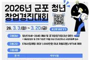 [ 중앙뉴스미디어 ] 군포산업진흥원은 지역 내 유망 청년 창업가를 발굴하고 혁신 아이디어의 성공적인 사업화를 지원하기 위해 2026년 군포 청년 창업경진대회 지원사업 참가자를 2026년 3월 3일부터 3월 20일까지 모집한다고 밝혔다. 이번 사업은 창의적인 아이디어와 기술력을 보유한 청년 예비창업자 및 초기 창업기업을 대상으로 우수 창업 아이템을 발굴하고, 단계별 맞춤 지원을 통해 안정적인 시장 진입과 지속 가능한 성장을 돕기 위해 마련됐다. 특히 경진대회를 통해 선발된 우수팀에게는 최대 1천만 원의 사업화 지원금과 전문가 멘토링 등 실질적인 성장 지원 프로그램이 제공될 예정이다. 또한 향후 창업보육센터 입주 신청 시 우대 혜택을 부여해 후속 성장까지 연계 지원할 계획이다. 군포산업진흥원은 이번 사업을 통해 청년 창업 활성화 기반을 더욱 강화하고, 지역 내 창업 생태계 선순환 구조를 구축해 나간다는 방침이다. 아울러 우수 창업기업이 관내에 안정적으로 정착해 지속적으로 성장할 수 있도록 맞춤형 지원을 확대해 나갈 예정이다. 유병직 원장은 “청년 창업은 지역 경제의 미래 성장 동력”이라며, “이번 지
