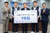[ 중앙뉴스미디어 ] 기아(주) 노사가 “수원시 취약계층 지원에 사용해달라”며 1억 원을 한국사회복지협의회에 기탁했다. 기부금은 수원시사회복지협의회를 통해 수원시 복지사각지대와 취약계층 지원에 사용될 예정이다. 12월 31일 수원시청 시장 집무실에서 열린 기부금 전달식에는 이재준 수원시장, 하임봉 전국금속노동조합 기아자동차지부장, 장명찬 수원시사회복지협의회장 등이 참석했다. 이재준 수원시장은 “수원시 지역사회에 관심을 가지고 따뜻한 나눔을 실천해 주셔서 감사드린다”며 “수원시사회복지협의회와 함께 도움이 필요한 곳에 소중한 마음을 잘 전달하겠다”고 말했다.
