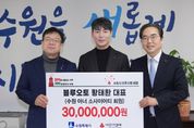 [ 중앙뉴스미디어 ] 황태환 블루오토 대표가 12월 31일 “취약계층 아동 지원에 사용해달라”며 3000만 원을 수원시에 기부했다. 수원시는 경기사회복지공동모금회 지정기탁 방식으로 후원금을 취약계층 아동 지원에 사용할 예정이다. 수원시청에서 열린 기부금 전달식에는 김현수 수원시 제1부시장, 황태환 블루오토 대표, 김효진 경기사회복지공동모금회 사무처장 등이 참석했다. 황태환 블루오토 대표는 “기부금이 도움이 필요한 아동에게 보탬이 되길 바란다”며 “지역사회의 이웃을 위한 나눔 활동을 꾸준히 이어가겠다”고 말했다. 김현수 제1부시장은 “수원시에 관심을 기울여주시고, 소중한 나눔을 실천해 주신 블루오토에 진심으로 감사드린다”며 “보내주신 따뜻한 마음은 도움이 필요한 취약계층 아동에게 큰 희망과 용기가 될 것”이라고 밝혔다.
