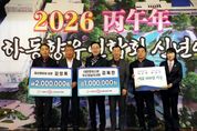 [ 중앙뉴스미디어 ] 하동군은 지난 9일 개최된 ‘전국하동향우연합회 2026년 신년인사회’에서 김영목 마산향우회장과 김옥찬 대한경제신문 부산·경남 지사장이 각각 고향사랑기부금 200만 원, 100만 원을 전달했다고 밝혔다. 이날 행사에는 황갑선 전국하동향우연합회장을 비롯한 각 지역 향우회 임원과 지역 인사들이 참석해 새해 인사를 나누고, 고향 하동의 지속 가능한 발전 방향을 논의했다. 김영목 회장과 김옥찬 지사장의 고향사랑기부는 이러한 뜻깊은 날에 의미를 더하며 함께 새해를 맞이하는 향우들의 끈끈한 연대와 우정을 보여줬다. 하승철 하동군수는 감사의 인사를 전하며 “고향사랑기부는 내 고향에 대한 마음을 전할 수 있는 소중한 수단이 되어주고 있다. 소중한 기부금을 군민들이 가장 필요한 곳에 사용하겠다”라고 말했다. 한편, 고향사랑기부제는 개인이 현재 주소지를 제외한 지방자치단체에 연간 최대 2천만 원까지 기부할 수 있는 제도이다. 10만 원 이하는 전액 세액 공제, 10만 원 초과 20만 원 이하는 44%, 20만 원 초과분에 대해서는 16.5%의 세액 공제 혜택이 주어지며, 누구든지 ‘