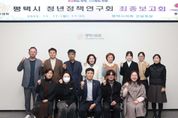 [ 중앙뉴스미디어 ] 평택시의회 의원 연구단체인 ‘평택시 청년정책연구회’는 17일 시의회 간담회장에서 최종보고회를 개최했다. 보고회에는 김산수 대표의원을 비롯해 김혜영·이기형·유승영 의원과 외부 전문가 회원, 청년정책과장 등 약 15명의 관계자가 참석했으며 연구용역을 맡은 더가능연구소 정현미 수석연구원으로부터 연구용역 최종보고를 청취하고 질의응답 시간을 가졌다. 주요 내용으로 △중앙정부 및 경기도 청년정책 주요 방향 △청년친화도시 지자체 정책의 시사점 △청년친화도시 조성을 위한 정책 제안 △평택시 청년친화도시 추진 방향 등에 대해 청취 후, 참석자들 간 여러 의견을 교환했다. 김산수 대표의원은 “올해 연구회 활동은 오늘로 마무리 되지만 많은 청년들이 평택시에서 일하고·놀고·살고 싶게 만드는 청년정책의 근본적인 시스템 구축의 시작점이기도 하다”며 “향후 청년친화도시 지정을 위하여 청년의 목소리를 중심에 두고 부족한 부분을 보완하며, 청년이 머물고 성장할 수 있는 정책 기반을 마련하기 위해 계속 관심을 가지고 지원하겠다”고 말했다. 한편, 해당 연구회는 ‘평택시 청년친화도시 조성을 위한 정책 연구’를