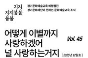 [ 중앙뉴스미디어 ] 경기도와 경기문화재단이 12월을 맞아 올해를 마무리하는 문화예술교육 비평웹진 〈지지봄봄〉 45호를 발행했다. ‘어떻게 이별까지 사랑하겠어, 널 사랑하는 거지’를 제목으로 한 이번 호는 현장의 지속가능성, 행정 구조의 과제, 비평의 역할 등 문화예술교육이 직면한 주요 쟁점을 깊이 있게 다룬다. 먼저, 기획자 유모라의 글 '예술인으로 존재하고 연대하기 위하여 - 홍우주 예술학교 A.L.T.O. 탄생기'는 11년 차 홍우주사회적협동조합이 ‘홍대앞 정신’을 잇기 위해 시작한 ‘예술학교 A.L.T.O.’의 배경과 의미를 조명한다. 파일럿 프로그램을 통해 확인한 연대의 가능성과 함께, 홍우주가 그리는 지속 가능한 지역 문화예술 생태계를 탐색한다. ‘게릴라노동자들’의 대담 '문화재단 실무자 탈출기 - 『나라를 위해서 일한다는 거짓말』 함께 읽기'에서는 전 문화재단 실무자들이 공직사회의 조직 문화와 업무 환경을 돌아본다. 노한동의 책을 매개로 공공 조직의 현실을 비판적으로 되짚고, 여전히 현장에서 고군분투하는 실무자들에게 연대와 응원의 메시지를 전한다. 광주광역시 청소년삶디자인센터 김소연 기획실장 인터뷰