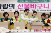 [ 중앙뉴스미디어 ] 대전 동구는 12일 동구청 후생관에서 동구자원봉사센터 주관으로 설 명절 맞이 ‘사랑의 선물바구니’ 제작 행사를 개최했다고 밝혔다. 이날 행사에는 박희조 동구청장을 비롯해 동구자원봉사협의회원 30여 명이 참여했으며, 함께 직접 준비한 떡국떡, 과일, 산자, 약과, 곰탕, 라면 등으로 구성된 선물바구니를 정성스럽게 포장하며 따뜻한 마음을 나눴다. 구는 이날 제작된 선물바구니를 관내 저소득층과 독거노인 등 취약계층 160세대에 전달할 예정이다. 우선제 동구자원봉사협의회장은 “회원들이 정성껏 준비한 선물바구니가 어려운 이웃들에게 작은 위로이자 큰 힘이 되기를 바란다”고 말했다. 박희조 동구청장은 “설 명절에도 어려운 이웃을 잊지 않고 나눔을 실천해 주신 자원봉사자 여러분께 감사드린다”며 “앞으로도 구민 모두가 소외됨 없이 따뜻한 명절을 보낼 수 있도록 촘촘한 나눔과 지원을 이어가겠다”고 전했다. [뉴스출처 : 대전시 동구]