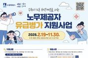 [ 중앙뉴스미디어 ] 수원특례시가 노동취약계층 노무 제공자에게 유급병가를 지원해 노동취약계층의 건강권·휴식권 보장에 힘을 보탠다. 수원시는 11월 30일까지 ‘2026년 노동취약계층 노무 제공자 유급병가 지원사업’ 신청을 받는다. 유급병가 지원사업은 국가건강검진 1일, 입원 진료 최대 12일 총 13일에 대해 1일 9만 1840원의 유급 보상을 지원하는 것이다. 수원시에 주민등록이 된 기준중위소득 100% 이하 18개 직종 노무 제공자가 지원 대상이다(건강보험 지역 가입자). 지원 대상은 보험설계사·건설기계조종사·방문강사·골프장캐디·택배기사·퀵서비스 기사·대출모집인·신용카드회원 모집인·대리운전기사·방문판매원·대여제품 방문점검원·가전제품 배송설치기사·건설현장 화물차주·화물차주·소프트웨어기술자·방과후학교강사·관광통역안내사·어린이통학버스기사이다. 검진 또는 입원 발생일로부터 180일 이내에 신청해야 한다. 새빛톡톡 ‘신청접수’에서 신청할 수 있다. 수원시 홈페이지에서 ‘노동 취약계층 노무제공자 유급병가 지원사업’을 검색해 신청해도 된다. 방문(팔달구 경수대로446번길 24, 3층 노동일자리정
