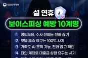[ 중앙뉴스미디어 ] 설 연휴 보이스피싱 예방 10계명 ① 명의도용, 수사 전화는 전화 끊기 ② 모텔 투숙 요구는 100% 사기 ③ 가족도 AI 조작 가능, 전화 끊고 확인 ④ 타인 계좌로 대출금 상환 요구는 사기 ⑤ 대출 승인 위한 선입금 요구는 사기 ⑥ 앱 삭제 및 설치 지시는 단호히 거절 ⑦ 불분명한 링크는 절대 클릭 금지 ⑧ 법원등기 반송 연락은 법원에 확인 ⑨ 신청 안 한 카드 전화는 바로 끊기 ⑩ '안심차단서비스'로 피해 사전 예방 [뉴스출처 : 문화체육관광부]