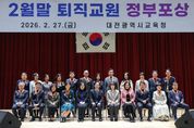 [ 중앙뉴스미디어 ] 대전시교육청은 2월 27일, 대전시교육청 대강당에서 퇴직교원 정부포상 대상자와 가족 등이 참석한 가운데 ‘2026년 2월말 퇴직교원 정부포상 전수식’을 개최했다고 밝혔다. 이번 포상 수상자들은 오랜 세월 교직에 몸담으며 대전교육과 국가 교육 발전에 기여한 공로를 인정받았다. 훈격별 수상자는 황조근정훈장 7명, 홍조근정훈장 29명, 녹조근정훈장 19명, 옥조근정훈장 7명, 근정포장 10명, 대통령표창 3명, 교육부장관 표창 5명 등 총 80명이다. 퇴직교원을 대표해 소회를 밝힌 대전문지중학교 박미혜 교장은 정든 교정을 떠나는 아쉬움과 함께 그동안 뜻을 같이한 동료 교육 가족들에게 깊은 감사의 마음을 전했다. 설동호 대전광역시교육감은 “교육에 대한 사랑과 열정으로 국가와 대전교육 발전을 위해 헌신한 선생님들께 존경과 축하의 마음을 전한다”라며 “대전교육가족은 언제나 선생님들의 노고를 기억하고 앞날을 응원할 것”이라고 밝혔다. [뉴스출처 : 대전시교육청]