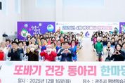 [ 중앙뉴스미디어 ] 광주시보건소는 16일 65세 이상 어르신을 대상으로 운영 중인 ‘또바기 건강동아리 한마당 축제’를 성황리에 마무리했다. 이번 축제는 방세환 시장을 비롯해 또바기 건강동아리 어르신 100여 명이 참석한 가운데 한 해 동안 건강동아리 활동에 참여해 온 어르신들의 노력을 되돌아보고 성과를 공유하기 위해 마련됐다. 행사장은 어르신들의 뜨거운 호응 속에 활기차고 따뜻한 분위기로 가득 찼다. 행사는 ▲1부 전통 타악 식전 공연(꽹과리·소고)과 미술작품 전시 관람 ▲2부 2025년 건강동아리 활동 발표 및 팀별 놀이마당 등 어르신들의 적극적인 참여와 소통을 중심으로 구성됐다. 특히, 꾸준히 걷기 활동과 운동 프로그램에 참여해 온 어르신들의 1년간 활동 영상을 함께 시청하며 건강을 위해 함께 땀 흘린 시간을 추억하는 뜻깊은 시간이 이어졌다. 이날 함께 진행된 또바기 건강동아리 미술반 작품 전시는 어르신들의 예술적 역량을 시민들과 공유하는 자리로 마련돼 참여 어르신들에게 감동과 성취감을 동시에 선사했다. 미술반 작품 전시는 15일부터 31일까지 평생학습관 2층 전시실에서 진행되며 광주시민 누구