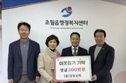 [ 중앙뉴스미디어 ] 광주시 초월읍 선동리에 위치한 삼동교회는 지난 12일 경기 사회복지공동모금회를 통해 성금 200만 원을 초월읍에 기탁했다. 이번에 기탁된 성금은 초월읍 지역 내 저소득 가구 등 취약계층 지원에 사용될 예정이다. 오병철 담임목사는 “지역의 어려운 이웃들이 조금이나마 따뜻한 일상을 보내는 데 도움이 되길 바란다”며 “앞으로도 지역사회와 함께하는 교회가 되도록 노력하겠다”고 말했다. 이에 대해 이학순 읍장은 “따뜻한 나눔을 실천해 주시는 삼동교회에 깊이 감사드린다”며 “기탁해 주신 성금은 도움이 필요한 이웃들에게 소중히 전달하겠다”고 밝혔다.