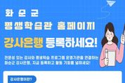 [ 중앙뉴스미디어 ] 화순군은 12일 지역 평생학습 활성화와 다양한 학습 프로그램 운영을 위해 평생학습관 홈페이지를 통해 ‘강사은행’ 등록을 상시 접수한다고 밝혔다. 강사은행은 평생학습 분야에서 활동 중이거나 활동을 희망하는 강사의 전문 분야, 강의 경력, 자격 사항 등을 체계적으로 관리하는 인력풀 제도다. 등록된 강사는 향후 평생학습관 및 관내 평생교육기관에서 강사 섭외 등에 활용된다. 등록 대상은 인문·교양, 문화·예술, 건강·생활체육, 인지·치유, 디지털·미디어 등 평생학습과 관련한 다양한 분야의 강의가 가능한 강사로, 해당 분야의 자격증 소지자 또는 강의 경력자라면 누구나 신청할 수 있다. 등록을 희망하는 경우 화순군 평생학습관 홈페이지에서 ‘평생교육 강사은행 등록 메뉴’를 통해 신청서와 자격 증빙 서류를 제출하면 된다. 제출된 자료는 내부 검토 후 강사은행에 등재되며, 강의 개설 시 분야별로 강사에게 개별 연락할 예정이다. 조미화 인구청년정책과장은 “강사은행은 지역의 숨은 인재를 발굴하고, 수요자 중심의 다양한 평생학습 프로그램을 운영하기 위한 중요한 기반”이라며,