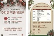 [ 중앙뉴스미디어 ] 구리시 여성행복센터는 12월 1일부터 12월 12일까지 2주간 ‘2025년 수강생 작품 전시 및 발표회’를 개최한다고 밝혔다. 이번 행사는 여성행복센터 행복동 1층에서 진행되며, 한 해 동안 수강생들이 갈고닦은 실력을 선보이는 자리다. 생활 속 문화예술 참여를 확대하고 시민의 문화 향유 기회를 높이는 동시에 여성행복센터 프로그램에 관한 관심을 높이기 위해 마련됐다. 전시장에는 양재 소품, 나만의 옷 만들기, 꽃꽂이, 가죽공예, 서양화, 한국화 등 총 9개 강좌에서 제작한 약 120점의 작품이 전시된다. 또한 플루트, 바이올린, 통기타 음악 강좌 수강생들의 발표 공연도 함께 진행되어 다채로운 즐길 거리를 제공할 예정이다. 백경현 구리시장은 “추워지는 연말, 여성행복센터 수강생들의 작품발표회가 시민들의 마음을 따뜻하게 채우는 시간이 되길 바란다”라고 전했다. 한편, 구리시 여성행복센터는 2025년에 5개 교육과정, 총 72개 강좌를 실시해 2,754명이 교육을 수료했으며, 2026년 1기 수강생 모집은 12월 15일부터 28일까지 진행될 예정이다. 자세한 사항은 여성행복센터 홈페이