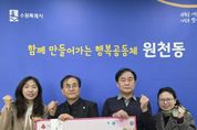 [ 중앙뉴스미디어 ] 지난 17일 경기중앙지방법무사회 수원지부는 원천동 저소득 지역주민들을 돕기 위해 성금 100만 원을 원천동행정복지센터(동장 김선혁)에 후원했다. 이번에 전달된 성금은 경제적 어려움을 겪고 있는 원천동 저소득 지역주민들을 위해 사용될 예정으로, 지역사회 나눔 문화 확산에 기여할 것으로 기대된다. 경기중앙지방법무사회 수원지부 관계자는 “작은 정성이지만 지역 내 어려운 이웃들에게 도움이 되길 바란다”며 “앞으로도 지역사회와 함께하는 다양한 나눔 활동을 지속해 나가겠다”고 밝혔다. 김선혁 원천동장은 “어려운 이웃을 위한 따뜻한 나눔에 깊이 감사드린다”며 “후원금은 도움이 꼭 필요한 저소득 주민들을 위해 소중히 사용하겠다”고 전했다. 한편, 경기중앙지방법무사회 수원지부는 매년 꾸준히 성금을 전달하여 지역사회 복지 증진을 위해 힘쓰고 있다.