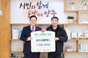 [ 중앙뉴스미디어 ] 양주시가 31일 ㈜스포플렉스로부터 연말을 맞아 이웃돕기 성금 100만 원을 기탁받았다. 이날 기탁식에는 남병태 대표가 참석했으며, 기탁된 성금은 경기 사회복지공동모금회를 통해 양주시 취약계층 지원에 사용될 예정이다. 남병태 대표는 “연말을 맞아 지역의 어려운 이웃들에게 작은 힘이라도 보태고 싶었다”며 “앞으로도 지역사회와 함께하는 기업으로서 나눔을 이어가고 싶다”고 말했다. 시 관계자는 “㈜스포플렉스의 따뜻한 기부에 감사드리며, 기부금이 꼭 필요한 곳에 잘 전달돼 많은 분들에게 힘이 될 수 있도록 최선을 다하겠다”고 전했다. 한편 광적면에 소재한 ㈜스포플렉스는 헬스기구 제조업체로, 사회적 책임을 실천하며 나눔 활동에 동참하고 있다.