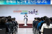 [ 중앙뉴스미디어 ] 제천시는 지난 31일 제천시청 5층 청풍호실에서 2025년 종무식을 개최하고, 한 해 동안 시정 발전과 시민행복을 위해 헌신한 직원들의 노고를 격려했다. 종무식에 앞서 지역청년예술단체인 ‘레인브릿지’팀의 실내악 콘서트를 마련하여 바쁜 행정업무 속에서 쉼 없이 달려온 직원들에게 위로와 휴식의 시간을 선사했다. 이날 종무식에서는 올 한 해 각종 평가에서 성과를 낸 부서를 비롯해 정부 우수공무원, 정부 모범공무원, 제천시 올해의 공무원 등에 대한 표창 수여식도 함께 진행했다. △김영옥 일자리경제과장이 ‘정부 우수공무원’으로 국무총리 표창과 수장을, △고정택 봉양읍 행정팀장, 김성환 재정공모팀장, 김병기 교통행정팀장, 손원철 도시건설팀장이‘정부 모범공무원’으로 국무총리 표창과 함께 수장을, △박재훈 언론보도팀장, 이동춘 친환경농업팀장이 행정안전부장관 표창을 받았다. 또한 2025년 부서평가에서 미래정책과, 일자리경제과, 문화예술과 3개 부서가 최우수 부서로, 읍면동 종합평가에서는 송학면, 교동이 최우수 읍면동으로 선정돼 각각 제천시장 표창과 시상금 100만 원을 받았다.