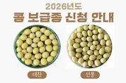 [ 중앙뉴스미디어 ] 당진시는 오는 4월 10까지 2026년도 콩‧팥 정부 보급종 신청을 받는다고 19일 밝혔다. 이번에 공급하는 품종은 콩 ‘대찬’과 ‘선풍’ 2개 품종과 팥 ‘아라리’ 품종이며, 공급 가격은 1포대(5kg)당 27,790원이다. 종자는 소독과 미소독 여부를 선택해 신청할 수 있다. 신청은 각 읍면동 행정복지센터 산업팀을 통해 가능하며, 신청한 종자는 4월 1일부터 5월 8일까지 신청 시 선택한 지역농협을 통해 공급될 예정이다. 콩 ‘대찬’은 내도복성(쓰러짐 견딤)이 강해 기계수확이 쉬운 황색 대립종으로, 청국장 등 가공 적성이 우수하고 수량성이 높은 것이 특징이다. 다만, 탈립(알떨림)에 약하므로 반드시 적기에 수확해야 한다. 콩 ‘선풍’은 논 재배 적응성이 우수하고 내도복성이 강해 기계화 재배 안정성이 뛰어난 중남부 지역 특화 품종이다. 안정적인 생산을 위해 적정 재식밀도를 준수하고, 검은뿌리썩음병 예방을 위한 철저한 배수 관리가 필요하다. 아울러 팥 ‘아라리’는 배정 물량이 30kg으로 소량 공급되며, 3월 9일 오전 9시부터 종자은행을 통해 전화 선착순으로 신청