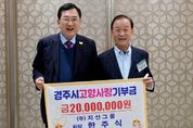 [ 중앙뉴스미디어 ] 경주시는 한주식 지산그룹 회장이 고향사랑기부 최고한도액인 2,000만 원을 기부하며 올해 경주시 고향사랑기부 고액기부자 1호에 이름을 올렸다고 9일 밝혔다. 한 회장은 지난해 고향사랑기부제 활성화와 지역 발전을 위해 향후 10년간 매년 2,000만 원씩 총 2억 원을 기부하겠다는 약정을 체결했으며, 올해도 이를 성실히 이행하며 나눔을 이어가고 있다. 경주 안강읍 사방리 출신인 한주식 회장은 경기도 용인시에 본사를 둔 물류·PC 제조업체 지산그룹을 운영하고 있으며, 평소에도 고향을 위한 자선과 기부 활동을 꾸준히 실천해 왔다. 특히 고향사랑기부제가 시행된 첫해부터 지속적으로 기부에 동참해 온 한 회장은 제도 도입 이후 지난해까지 누적 3,000만 원을 기부하며 고향에 대한 각별한 애정을 보여왔다. 한 회장은 “기업의 성장은 지역사회와 함께할 때 더욱 의미가 있다”며 “고향을 위한 작은 실천이 지역의 지속 가능한 발전으로 이어지길 바란다”고 말했다. 주낙영 경주시장은 “올해도 최고한도액인 2,000만 원을 기부해 주신 데 대해 깊이 감사드린다”며 “기부자의 뜻이 지역