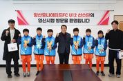 [ 중앙뉴스미디어 ] 양산시는 지난 3일 시청 3층 상황실에서 제55회 전국소년체육대회 경상남도 대표 선발전을 앞두고 훈련에 매진 중인 ‘양산유나이티드FC U12’ 선수단을 초청해 격려 간담회를 가졌다. 이날 간담회에는 양산유나이티드FC 배익두 대표이사와 조용기 감독을 비롯해 오지훈(부산 좌산초), 박라현(가촌초), 박승우(금송초), 강준서(동산초), 유현우(황산초), 김가인(금오초) 등 팀을 대표하는 12세 이하 유망주 선수 6명이 참석했다. 이번 간담회는 지역을 대표해 구슬땀을 흘리고 있는 어린 선수들의 사기를 북돋우고, 현장의 목소리를 청취하기 위해 마련됐다. 양산유나이티드FC U12팀은 현재 다가오는 전국소년체전 경남 대표 선발전을 대비해 강도 높은 훈련을 이어가고 있다. 지난 2021년 법인화와 함께 공공스포츠클럽으로 출범한 양산유나이티드FC는 짧은 역사에도 불구하고 괄목할 만한 성과를 거두며 영남권 최고의 유소년 축구 명문으로 자리 잡았다. 주요 성과로는 ▲경남 초·중 종합체육대회 6회 연속(2020~2025) 우승 ▲2년 연속(2023~2024) 전국소년체육대회 경남 대표